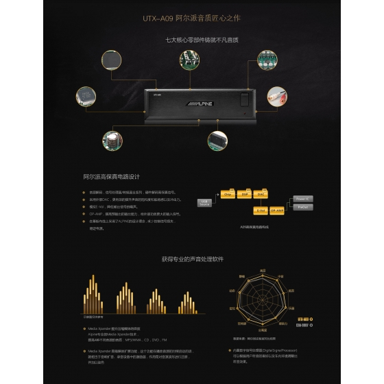 阿爾派高保真電路設計、豐富的高級調音功能。