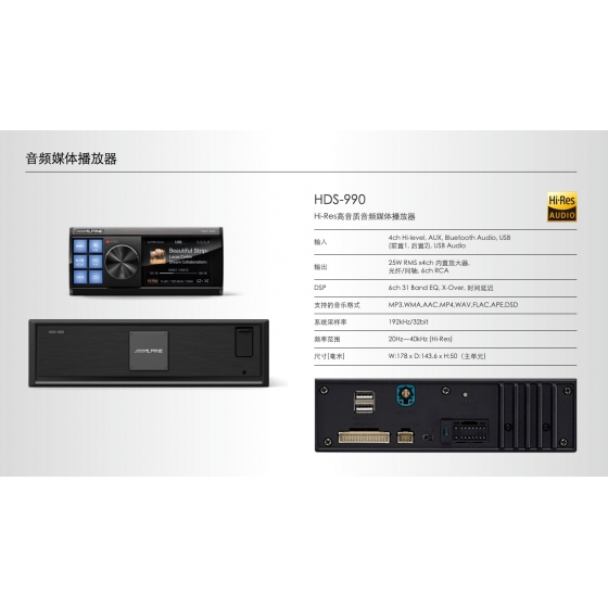 輸入:4ch Hi-level ∕ AUX ∕ Bluetooth Audio ∕ USB(前置1、後置2) ∕ USB Audio